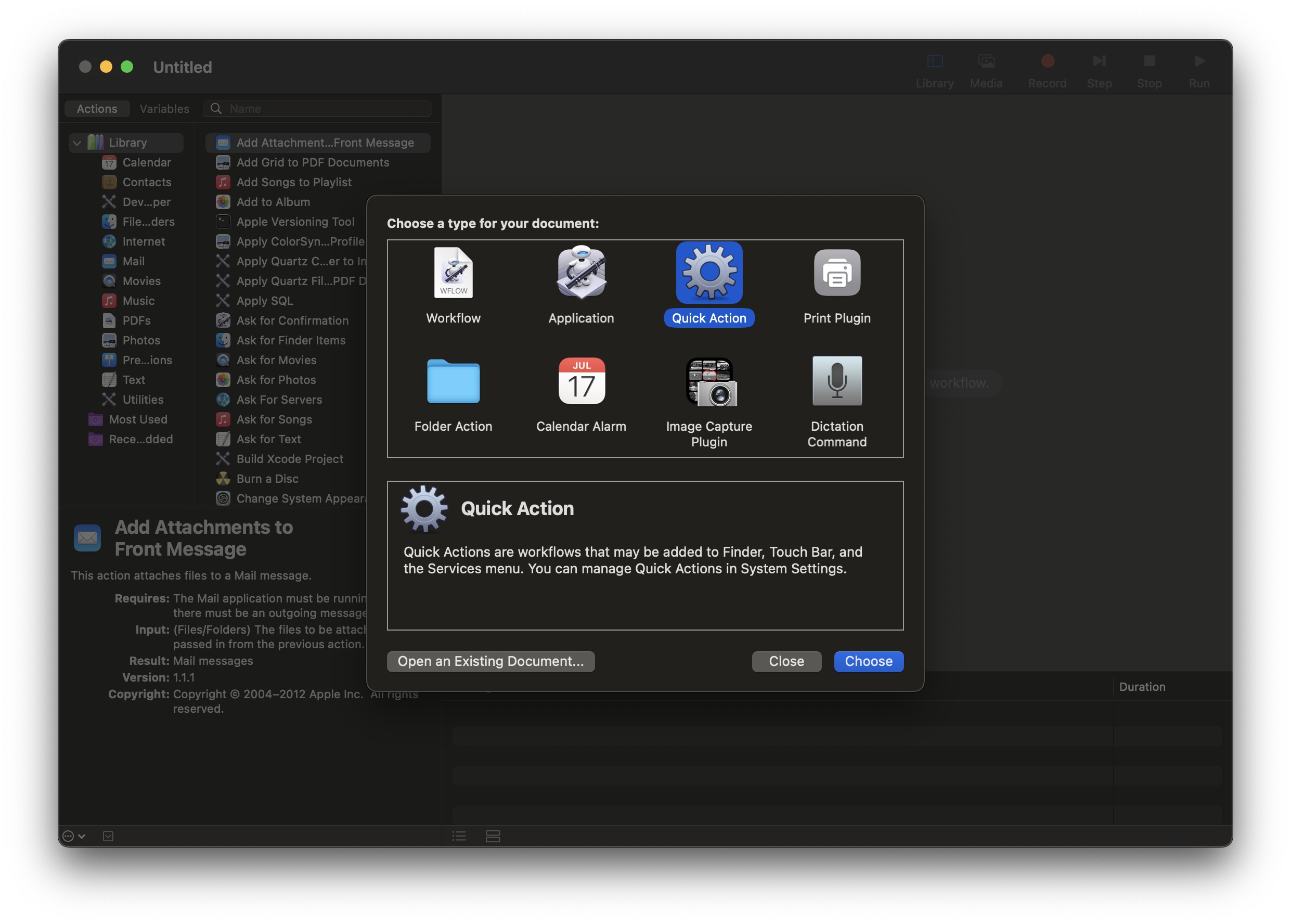 - Automator.app: Update the Run Shell Script with the following script and save.
